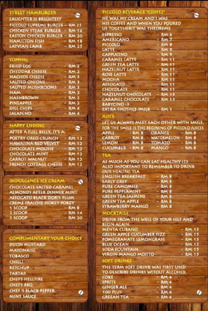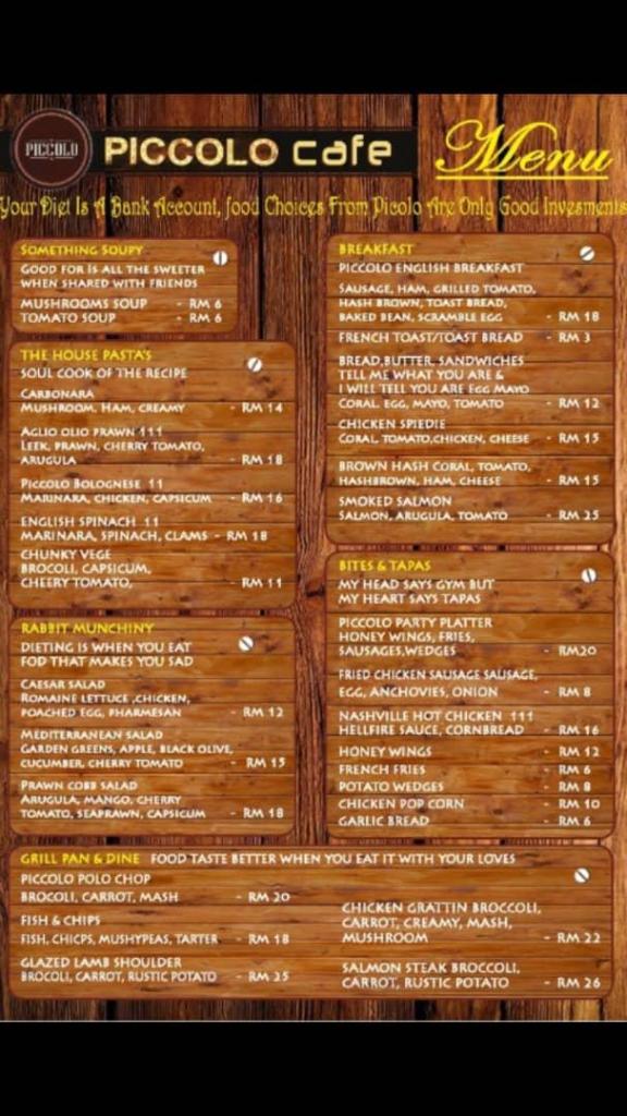 PICCOLO EQUINE CAFE MENU: